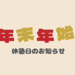 - 新年のご挨拶新年あけましておめでとうございます。旧年中は当塾へのご理解とご協力まことにありがとうございました。本年もどうぞ… 続きを読む: 新年のご挨拶